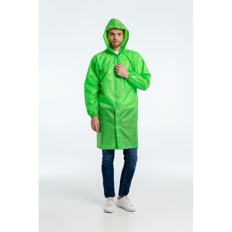 На Rainman получится нанести более яркое и четкое изображение с тонкими линиями, ведь переплетение нитей в ткани едва заметно. Фурнитура в цвет изделия удержит все внимание вокруг вашего маркетингового сообщения.Плащ-дождевик из ткани таффета на кнопках с капюшоном.