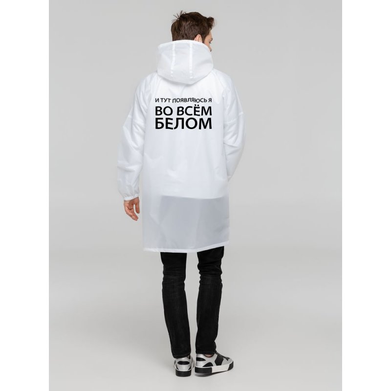 Креативный дождевик «Во всем белом» одновременно подчеркивает и чувство стиля, и чувство юмора. В этом плаще повышенное внимание к вашей персоне гарантировано.Плащ-дождевик из ткани таффета на молнии с капюшоном. Складывается в мешочек — удобно брать с собой.