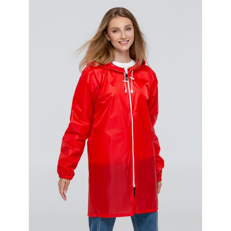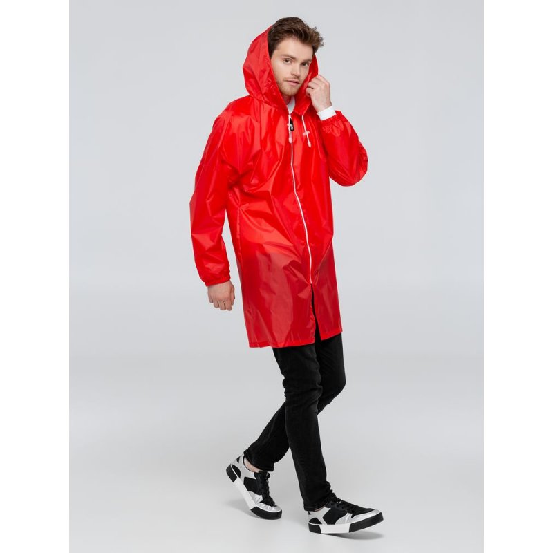 Плащ-дождевик из ткани таффета на молнии с капюшоном. Складывается в мешочек — удобно брать с собой.