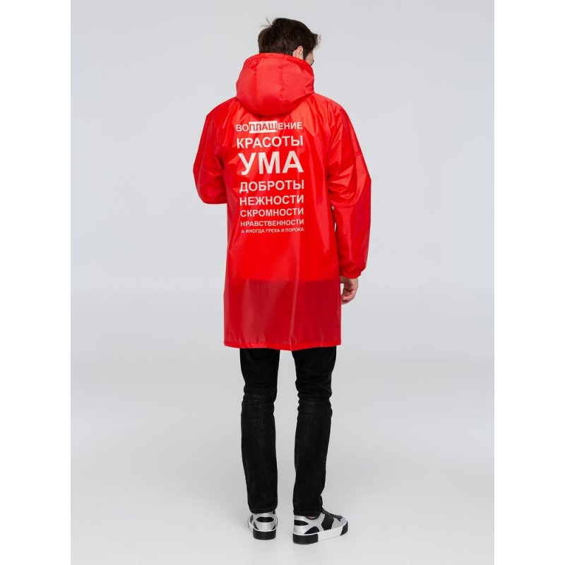 Серия дождевиков с принтом «Воплащение» для тех, кто и в дождливую погоду готов преображаться и шутить. Ум и скромность, красота, а может быть порок, или все это вместе? «Воплащение всего» — плащ для победителей, которым либо все, либо ничего!