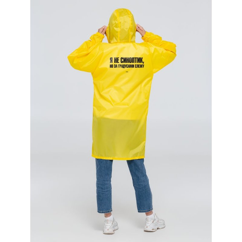 Предсказывать погоду трудно. А непогоду — легко! Если на улице тучи, дождь и ветер — это явный признак того, что надо захватить с собой дождевик. И лучше желтый. Вдруг это вызовет солнце!Плащ-дождевик из ткани таффета на молнии с капюшоном. Складывается в мешочек — удобно брать с собой.