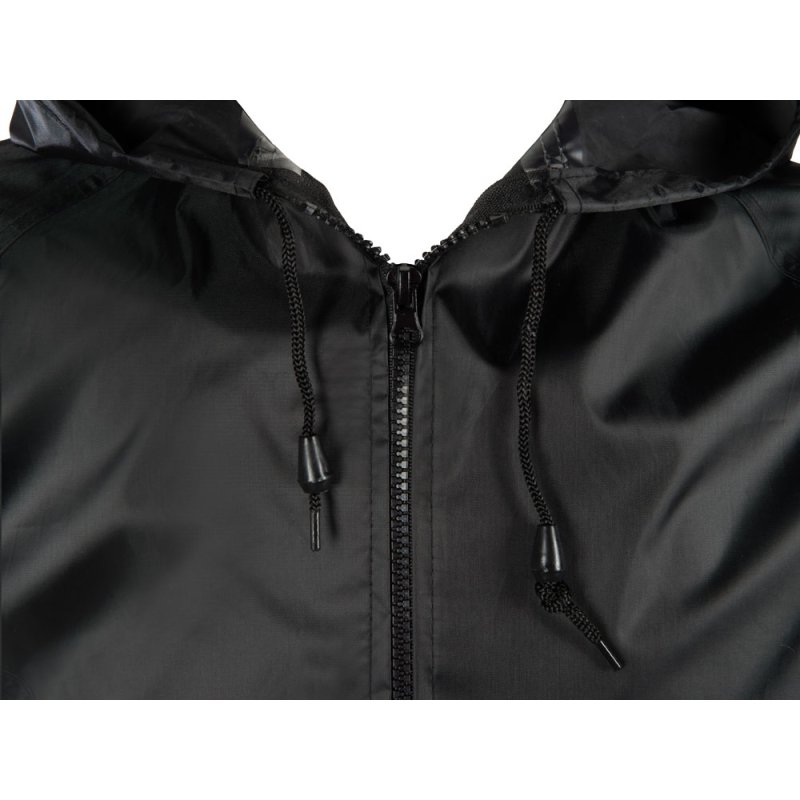 Рукав реглан обеспечивает комфортную посадку, не сковывает движения, что позволяет использовать дождевик для активного отдыха, а резинка по низу помогает сохранить тепло, препятствуя попаданию влаги и защищая от ветра.