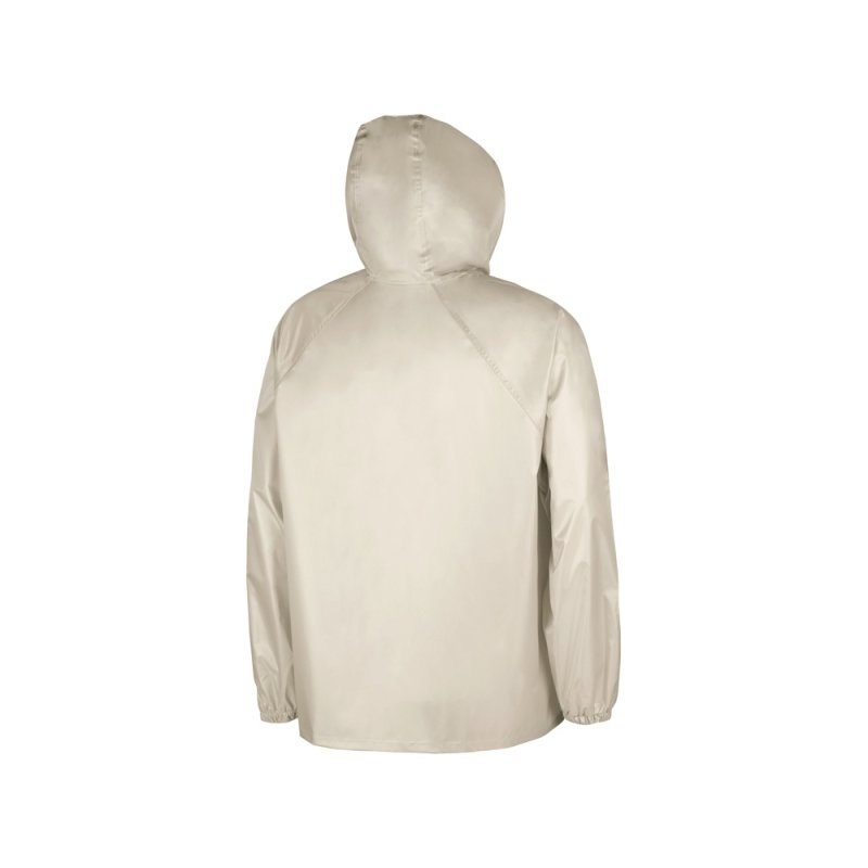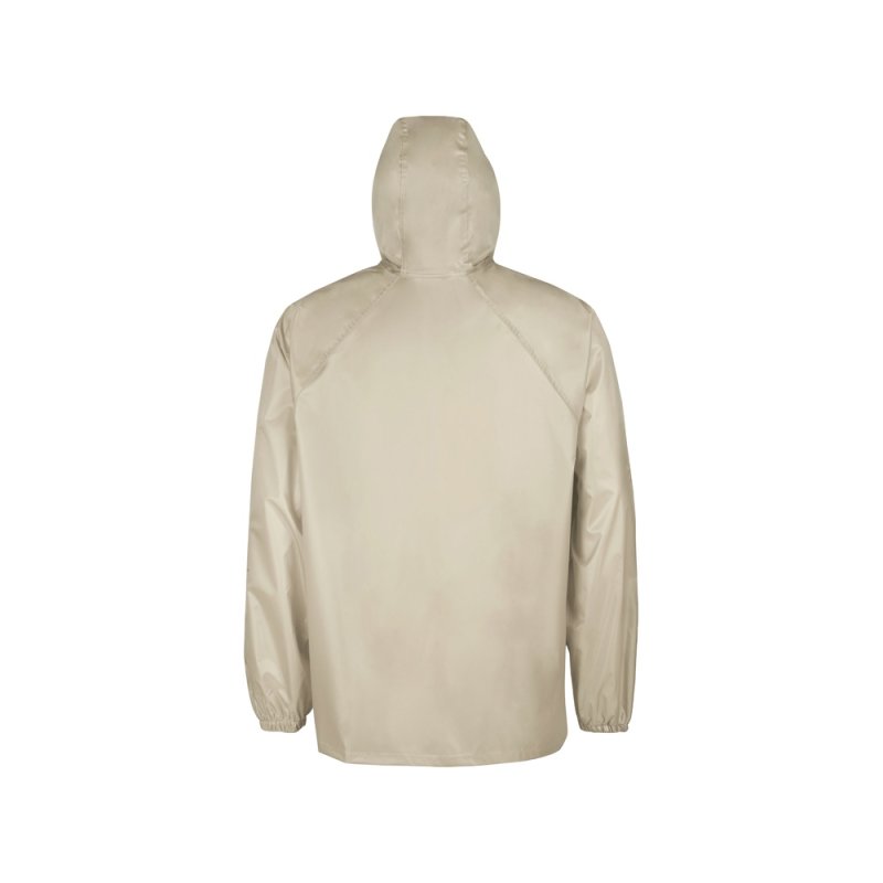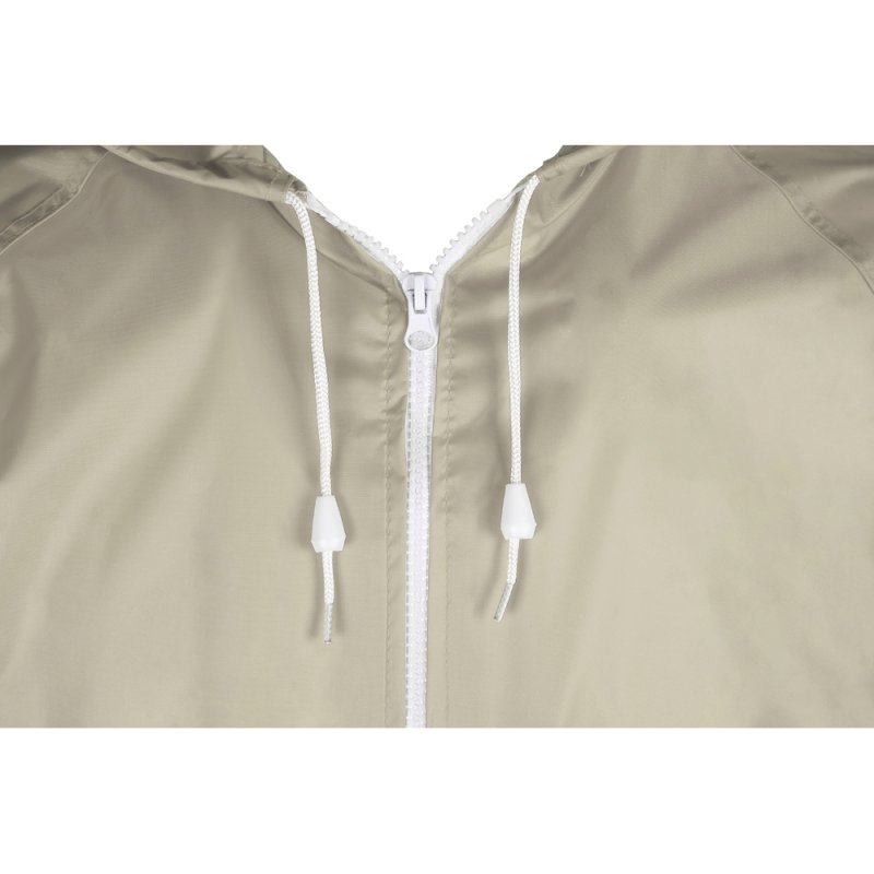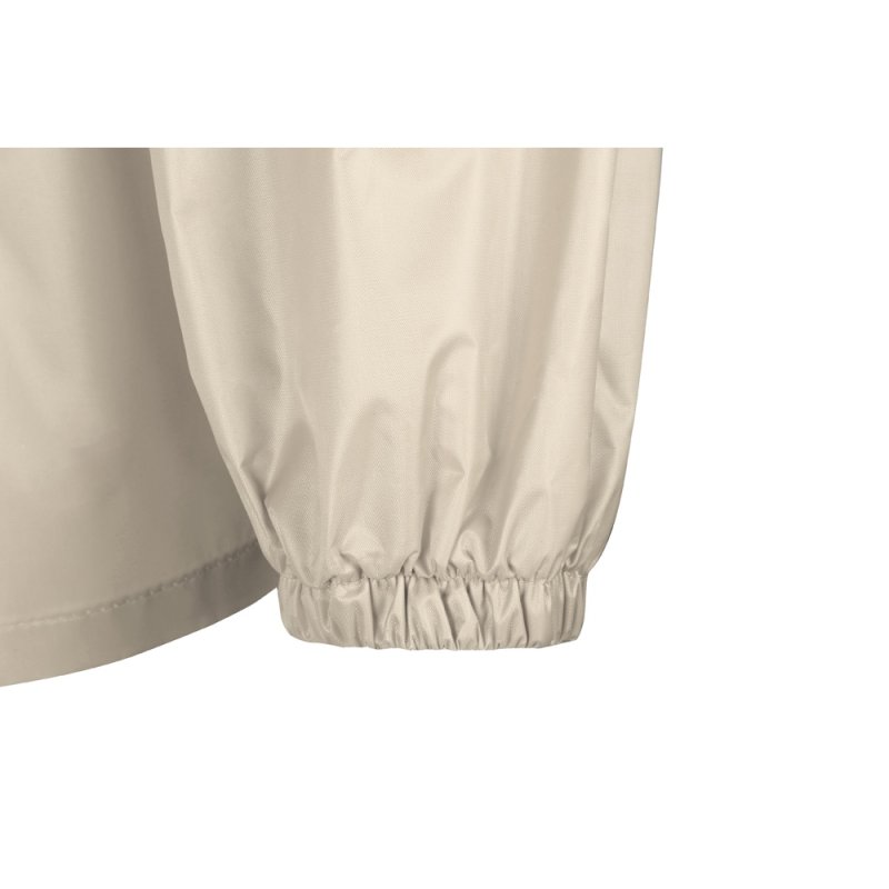 Рукав реглан обеспечивает комфортную посадку, не сковывает движения, что позволяет использовать дождевик для активного отдыха, а резинка по низу помогает сохранить тепло, препятствуя попаданию влаги и защищая от ветра.