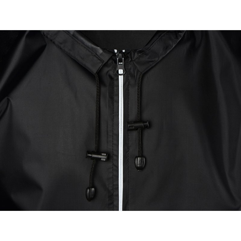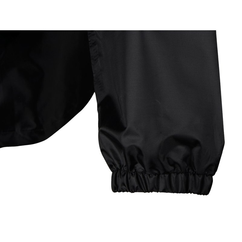 Капюшон и низ дождевика затягиваются на шнурки с фиксаторами, что позволяет отрегулировать посадку по фигуре. Манжеты дождевика — на резинке.