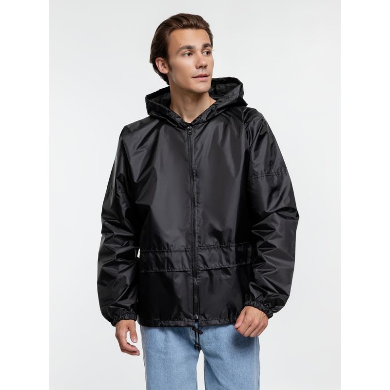 Укороченный дождевик свободного кроя из ткани таффета с влагозащитным покрытием. Складывается в мешочек — удобно брать с собой.