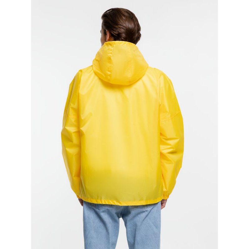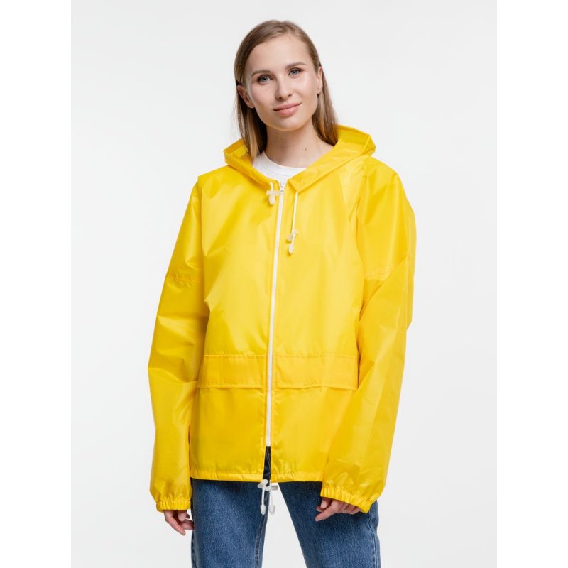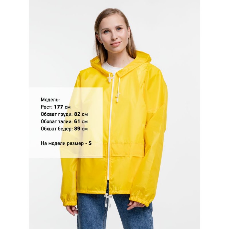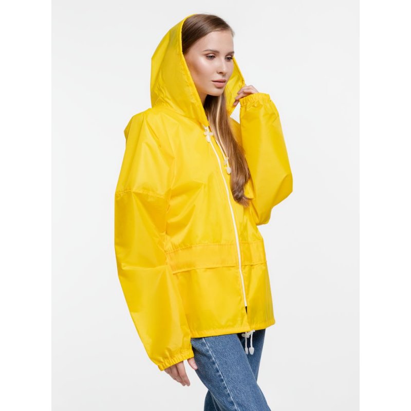 Укороченный дождевик свободного кроя из ткани таффета с влагозащитным покрытием. Складывается в мешочек — удобно брать с собой.