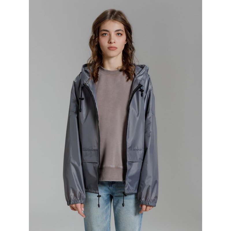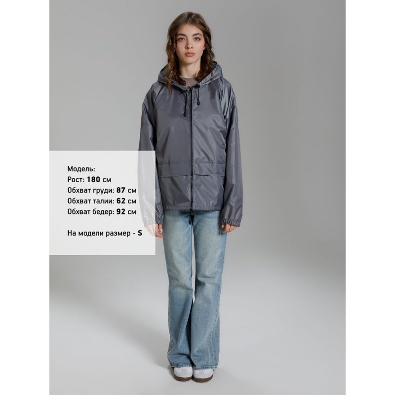 Укороченный дождевик свободного кроя из ткани таффета с влагозащитным покрытием. Складывается в мешочек — удобно брать с собой.