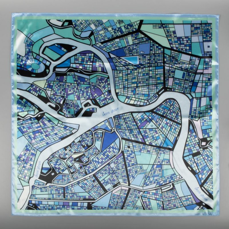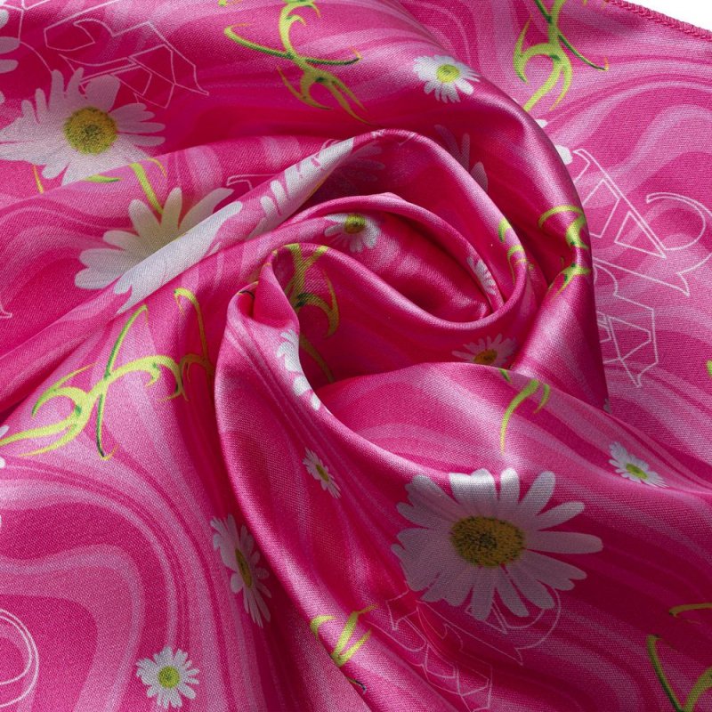 Платок может быть выполнен из шармуса, мокрого шелка или искусственного атласа, подходящих для сублимационной печати. Края обработаны оверлоком.