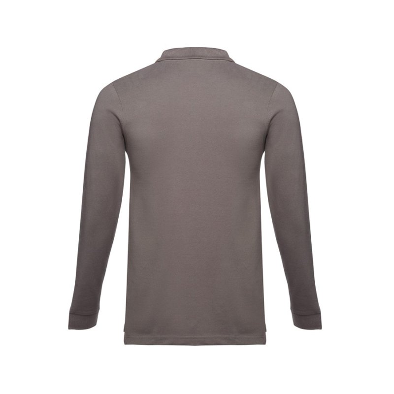 Мужская рубашка-поло с длинным рукавом из хлопковой ткани-пике.Полотно футболки упругое и гладкоеблагодаря обработке ферментами "enzyme wash" исохраняет форму при стирке.Модель полуприлегающего силуэта. Благодаря манжете из риба 1х1 рукав смотрится очень аккуратно. Воротник также выполнен из риба 1х1, внутри ворота - укрепляющая тесьма по горловине. Планка с 3 пуговицами в цвет основной ткани изделия. Запасная пуговица на ярлыке во внутреннем боковом шве.