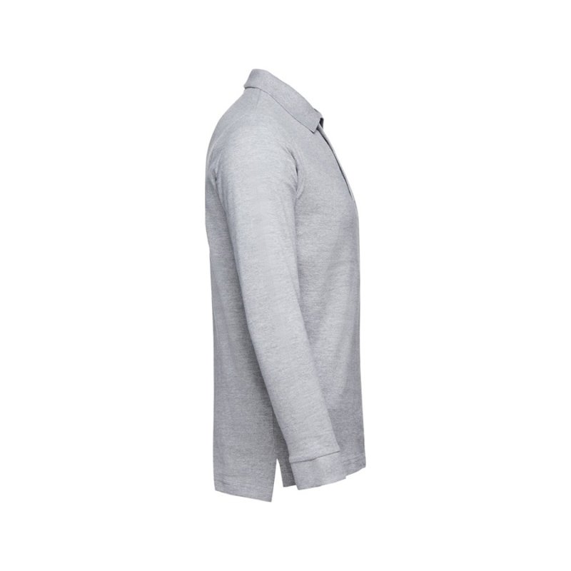Мужская рубашка-поло с длинным рукавом из хлопковой ткани-пике.Полотно футболки упругое и гладкоеблагодаря обработке ферментами "enzyme wash" исохраняет форму при стирке.Модель полуприлегающего силуэта. Благодаря манжете из риба 1х1 рукав смотрится очень аккуратно. Воротник также выполнен из риба 1х1, внутри ворота - укрепляющая тесьма по горловине. Планка с 3 пуговицами в цвет основной ткани изделия. Запасная пуговица на ярлыке во внутреннем боковом шве.