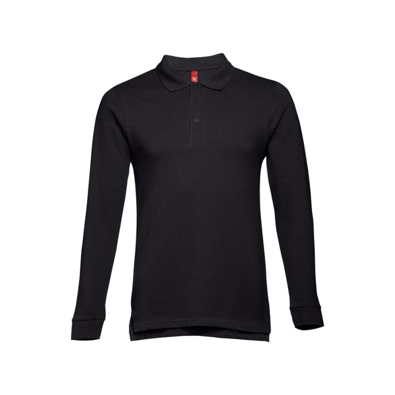Мужская рубашка-поло с длинным рукавом из хлопковой ткани-пике.Полотно футболки упругое и гладкоеблагодаря обработке ферментами "enzyme wash" исохраняет форму при стирке.Модель полуприлегающего силуэта. Благодаря манжете из риба 1х1 рукав смотрится очень аккуратно. Воротник также выполнен из риба 1х1, внутри ворота - укрепляющая тесьма по горловине. Планка с 3 пуговицами в цвет основной ткани изделия. Запасная пуговица на ярлыке во внутреннем боковом шве.