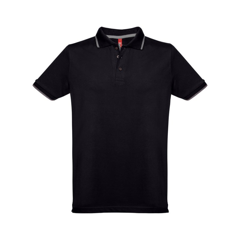 Мужская рубашка-поло из хлопковой ткани-пике.Полотно футболки упругое и гладкоеблагодаря обработке ферментами "enzyme wash" исохраняет форму при стирке.Модель полуприлегающего силуэта. Благодаря манжете из риба 1х1 рукав смотрится очень аккуратно. Воротник также выполнен из риба 1х1, внутри ворота - укрепляющая тесьма по горловине. Манжета на рукавах и край воротника выполнены контрастным цветом. Планка с 3 контрастными пуговицами. Запасная пуговица на ярлыке во внутреннем боковом шве.