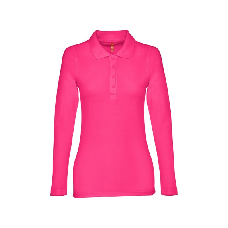 Женская рубашка-поло с длинным рукавом из хлопковой ткани-пике.Полотно футболки упругое и гладкоеблагодаря обработке ферментами "enzyme wash" исохраняет форму при стирке.Модель приталенного силуэта. Благодаря манжете из риба 1х1 рукав смотрится очень аккуратно. Воротник также выполнен из риба 1х1, внутри ворота - укрепляющая тесьма по горловине. Планка с 3 пуговицами в цвет основной ткани изделия. Запасная пуговица на ярлыке во внутреннем боковом шве.