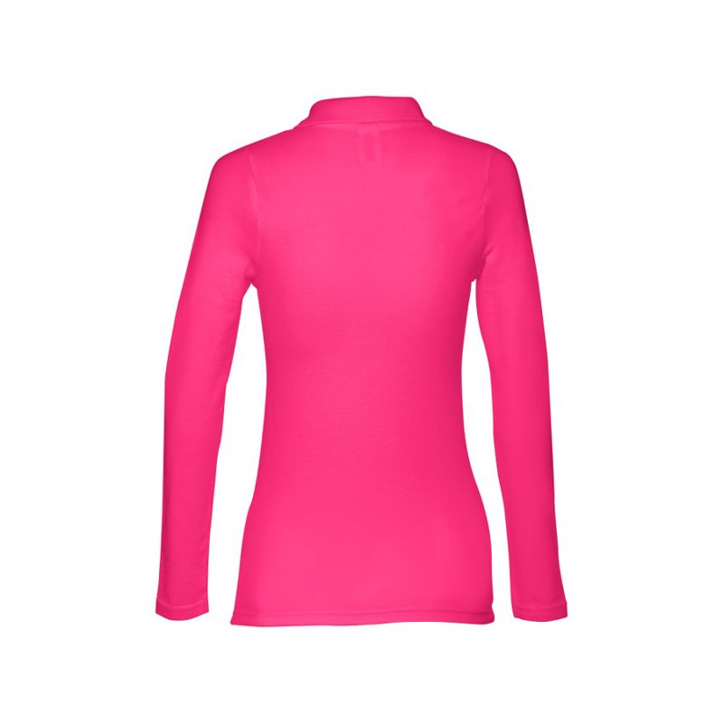 Женская рубашка-поло с длинным рукавом из хлопковой ткани-пике.Полотно футболки упругое и гладкоеблагодаря обработке ферментами "enzyme wash" исохраняет форму при стирке.Модель приталенного силуэта. Благодаря манжете из риба 1х1 рукав смотрится очень аккуратно. Воротник также выполнен из риба 1х1, внутри ворота - укрепляющая тесьма по горловине. Планка с 3 пуговицами в цвет основной ткани изделия. Запасная пуговица на ярлыке во внутреннем боковом шве.