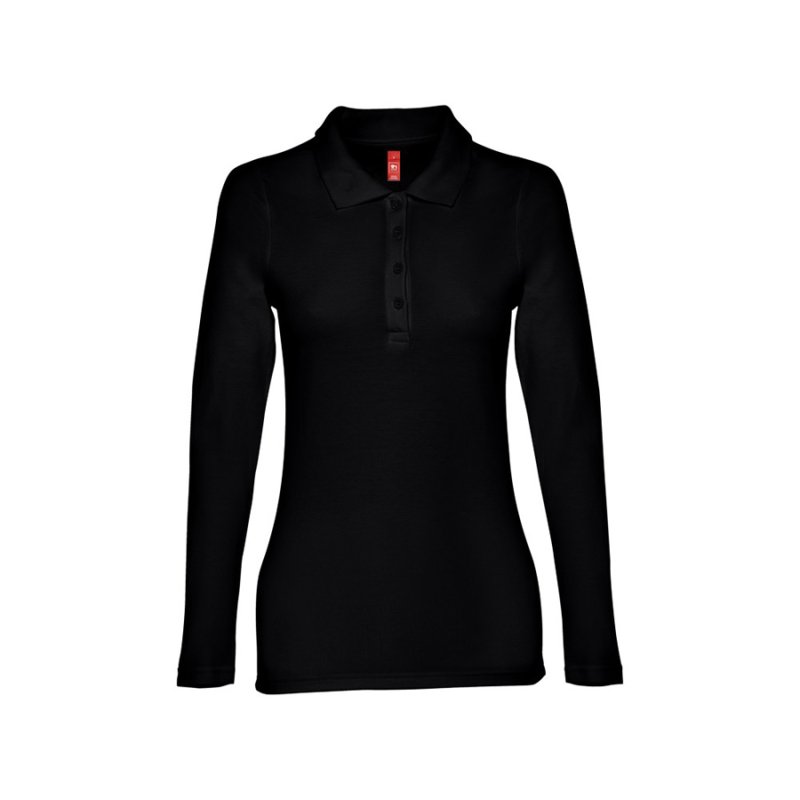 Женская рубашка-поло с длинным рукавом из хлопковой ткани-пике.Полотно футболки упругое и гладкоеблагодаря обработке ферментами "enzyme wash" исохраняет форму при стирке.Модель приталенного силуэта. Благодаря манжете из риба 1х1 рукав смотрится очень аккуратно. Воротник также выполнен из риба 1х1, внутри ворота - укрепляющая тесьма по горловине. Планка с 3 пуговицами в цвет основной ткани изделия. Запасная пуговица на ярлыке во внутреннем боковом шве.