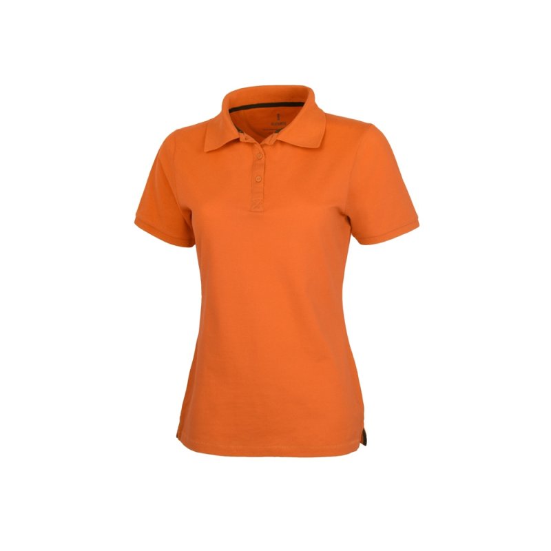 Женская рубашка поло с короткими рукавами Calgary. Стандартный покрой. Опущенный плечевой шов, цепная строчка. Мужская и детская модели на двух пуговицах. Женская модель с планкой на три пуговицы. Боковые разрезы с атласной лентой внутри. Детали со швами Pick-Stitch. Принт лого сзади в тон изделия. Атласная лента внутри горловины. Полумесяц. Резинка 1х1 на воротнике и манжетах. Трикотажное пике, 100% хлопок. 200 г/м².