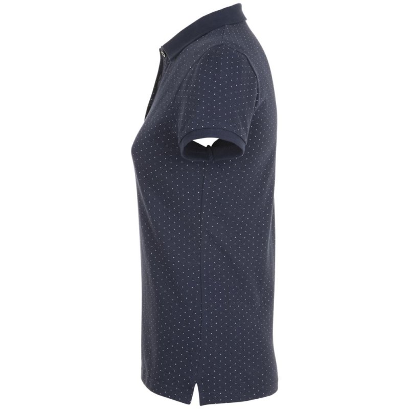 Кроеная (с боковыми швами) рубашка поло с печатным рисунком. Воротник с укрепляющей тесьмой и манжеты в рубчик, планка с 3 пуговицами тон в тон, боковые разрезы снизу.