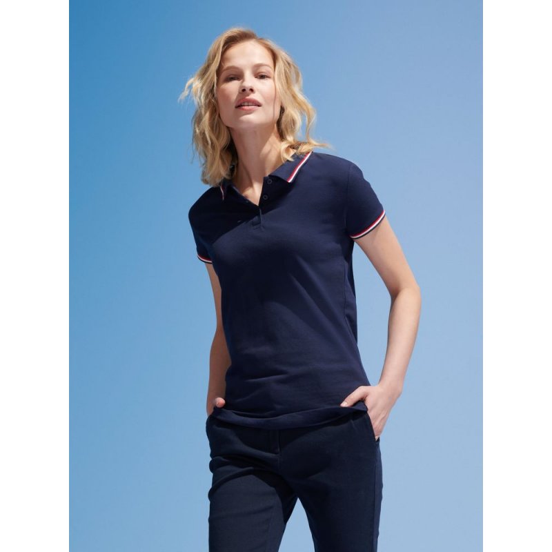 Женская рубашка поло с боковыми швами. Лейбл производителя в боковом шве изнутри, в шве горловины - только бирка с размером, что позволяет вам нанести свой логотип.