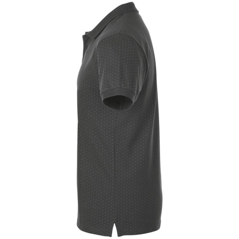 Кроеная (с боковыми швами) рубашка поло с печатным рисунком. Воротник с укрепляющей тесьмой и манжеты в рубчик, планка с 3 пуговицами тон в тон, боковые разрезы снизу.