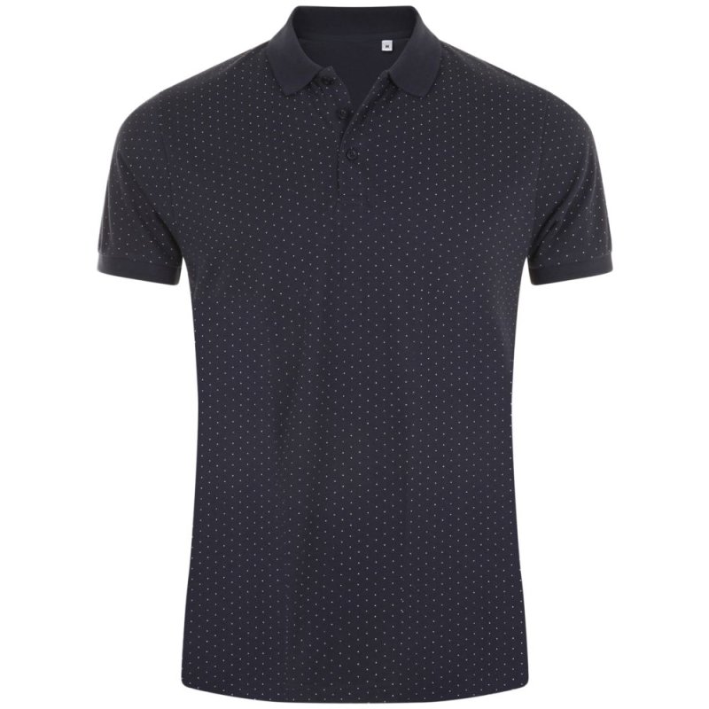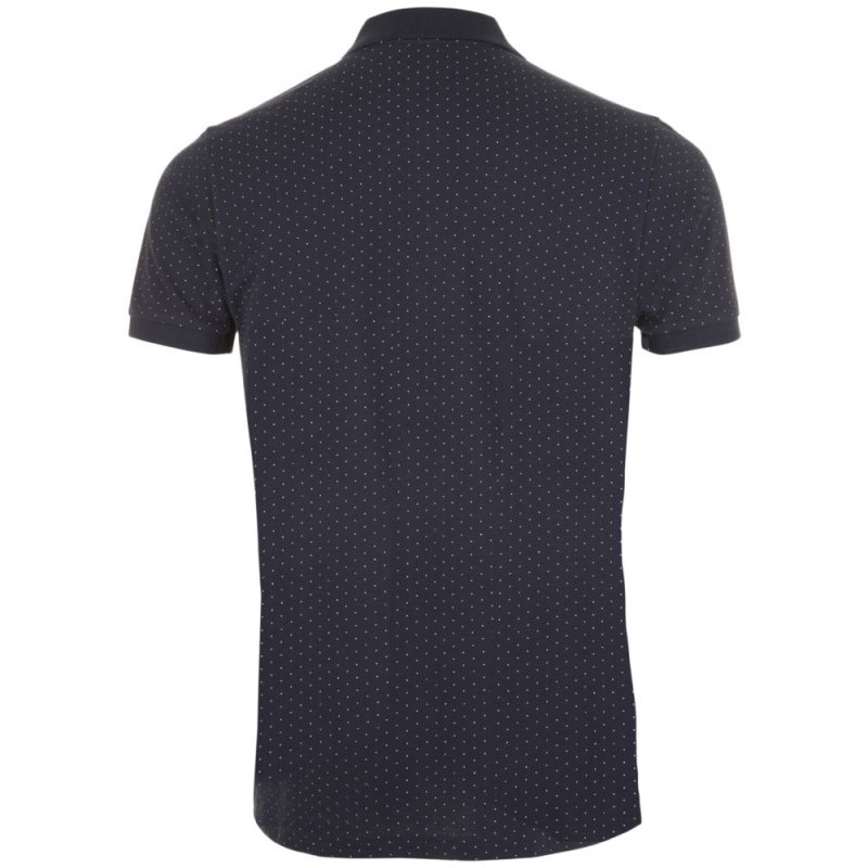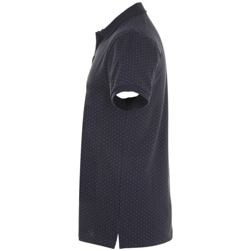 Кроеная (с боковыми швами) рубашка поло с печатным рисунком. Воротник с укрепляющей тесьмой и манжеты в рубчик, планка с 3 пуговицами тон в тон, боковые разрезы снизу.