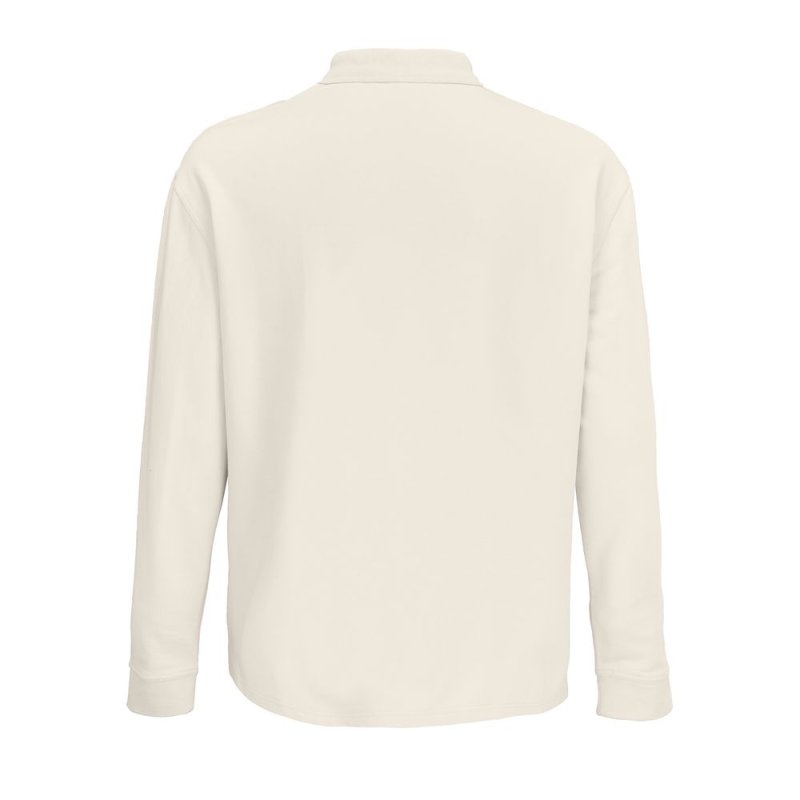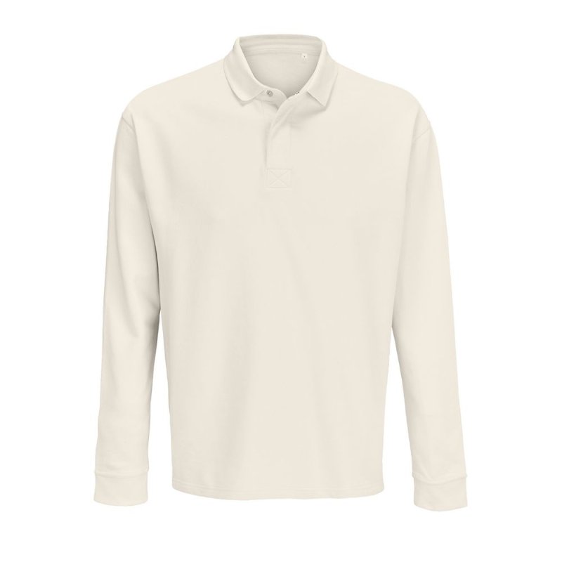 Рубашка поло из футера с длинным рукавом и спущенным плечом.