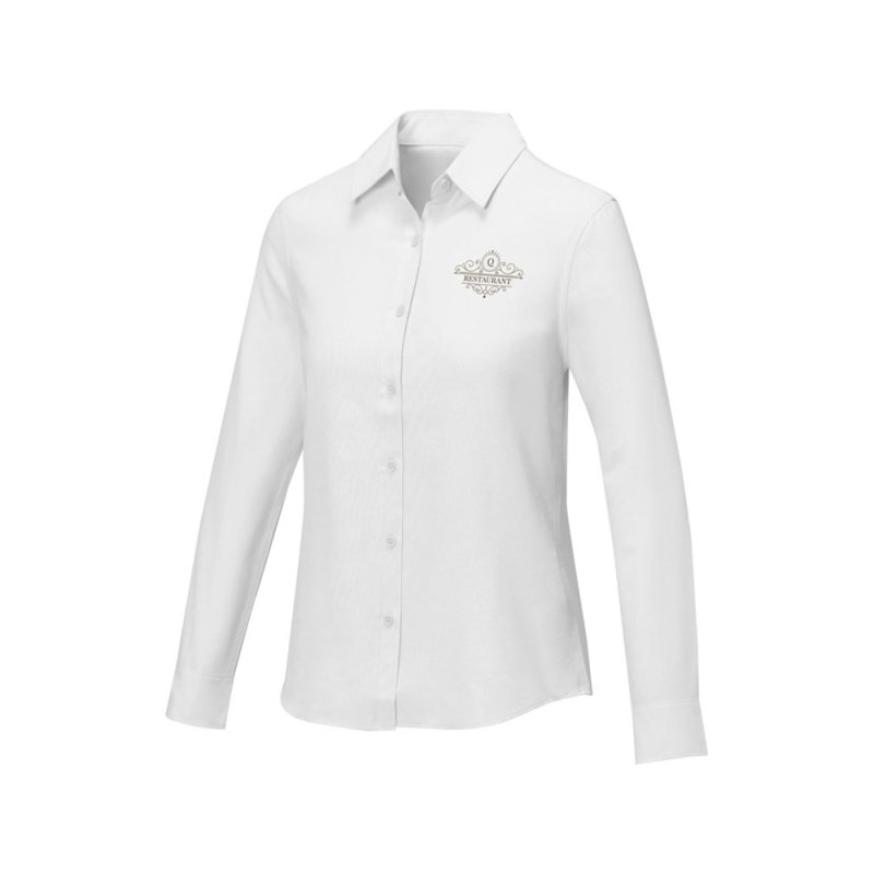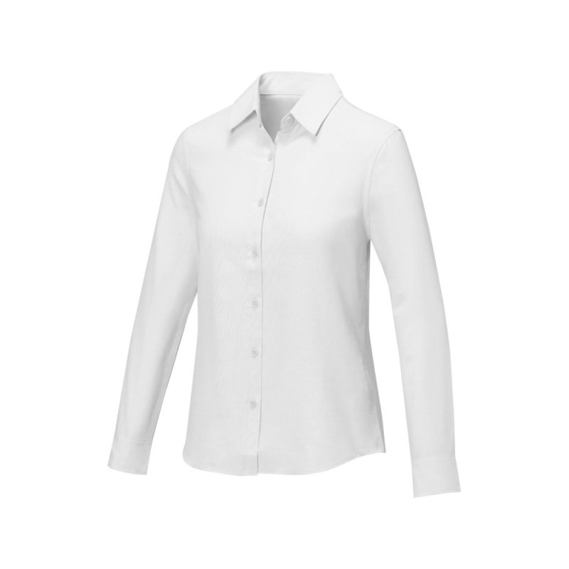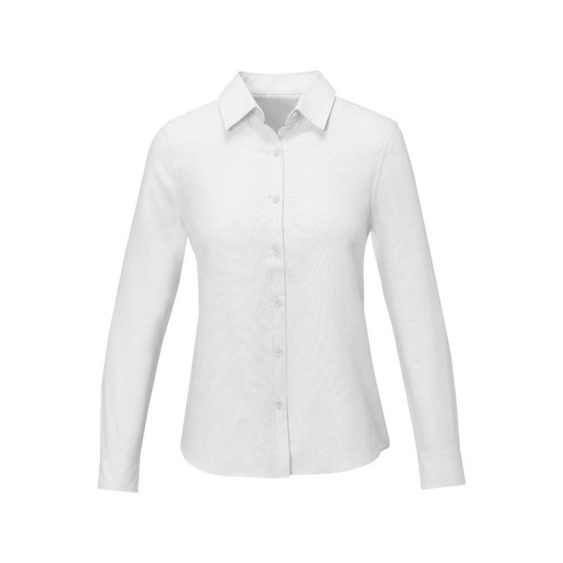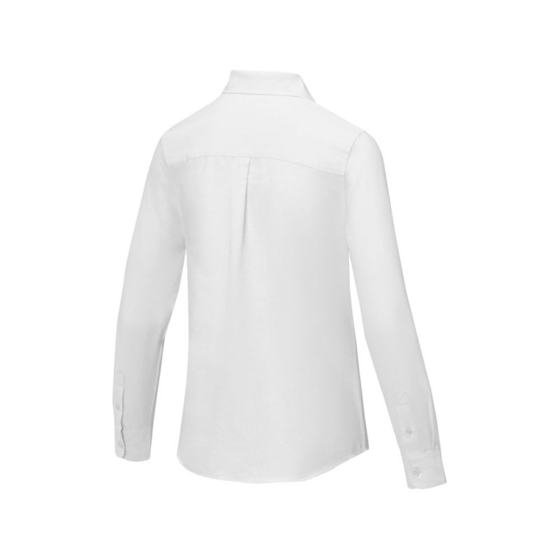 Pollux женская рубашка с длинными рукавами. Отрывной-отрезной лейбл. Регулируемая манжета рукава с одной складкой. Пуговицы в тон. Встречная складка на спинке. Ткань Оксфорд 55% хлопка, 45% полиэстера, 130гр.