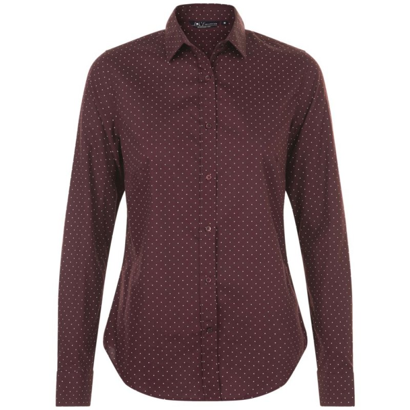Модная рубашка с печатным рисунком в горошек, которая прекрасно впишется в современный корпоративный стиль.Приталенная модель с нагрудными вытачками, маленьким классическим воротничком, планкой с 7 пуговицами тон в тон и манжетами на 1 пуговице с разрезом «капуцин».