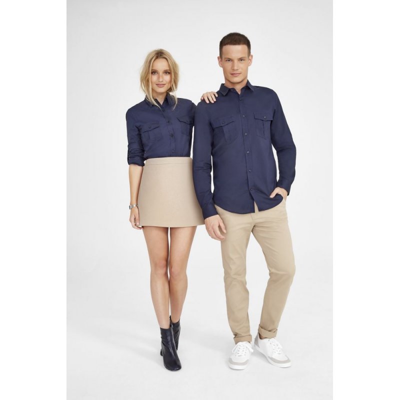 Рубашка приталенного кроя в стиле «сафари» с планкой на 7 пуговиц в тон.