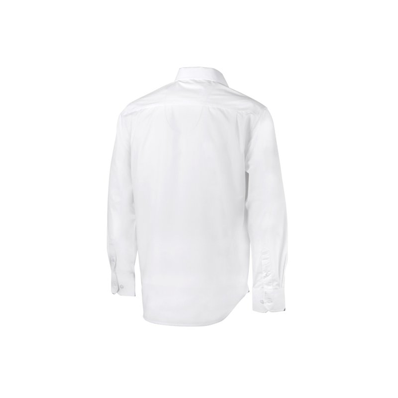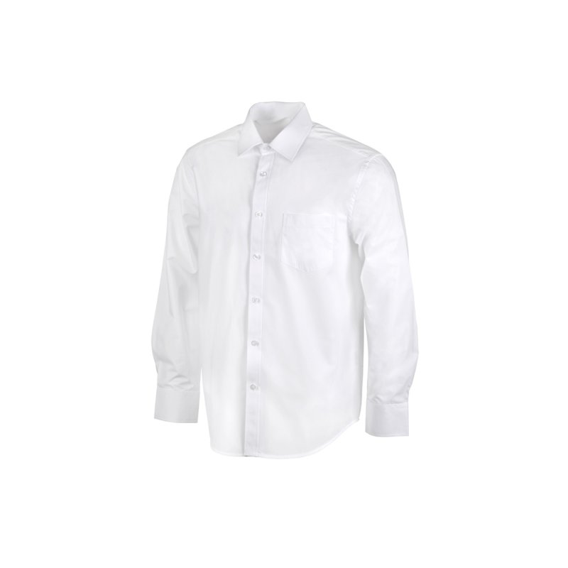Рубашка мужская с длинным рукавом на семи пуговицах. Накладной карман на груди слева, на спинке складки из-под кокетки, манжеты с двумя пуговицами и пуговица по планке рукава.