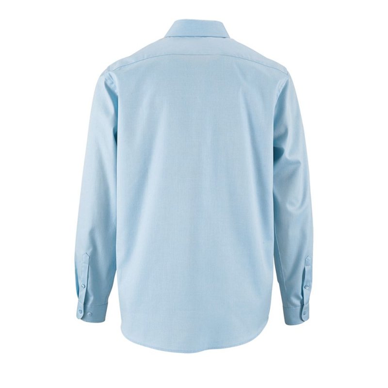 Рубашка прямого кроя с маленьким воротником, планка с 7 пуговицами. Выполнена из фактурной ткани, узор «елочка».
