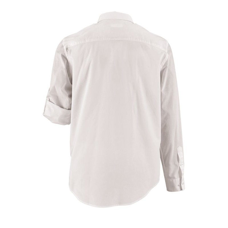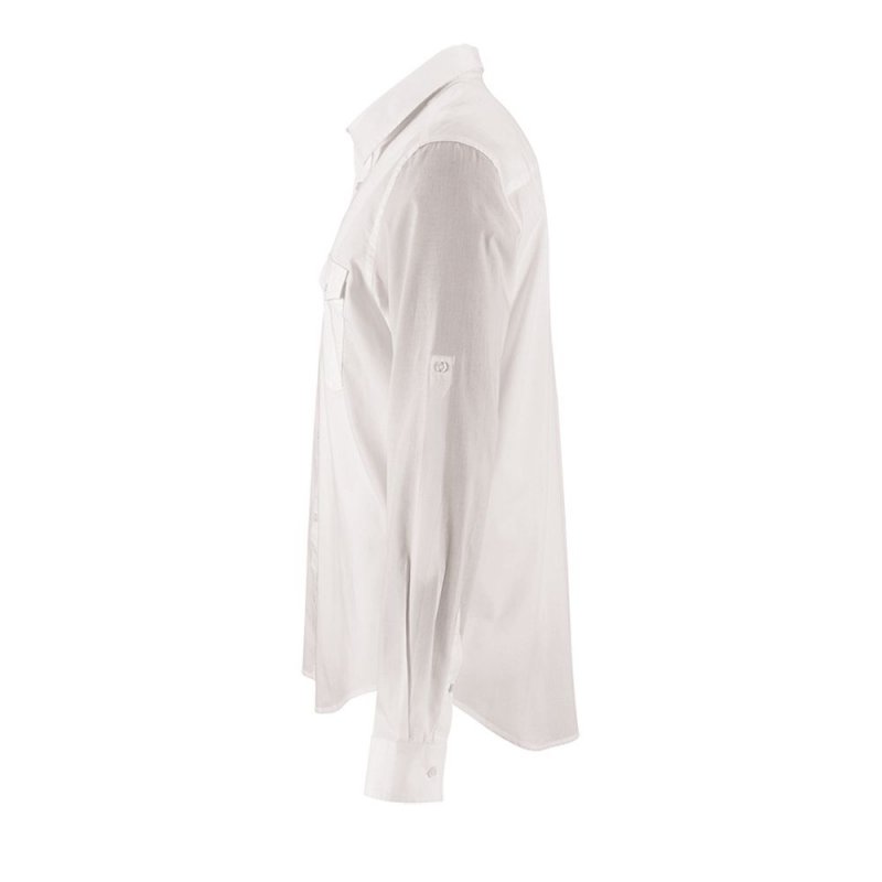 Рубашка прямого кроя в стиле «сафари» с планкой на 7 пуговиц в тон и манжетами на 1 пуговице.