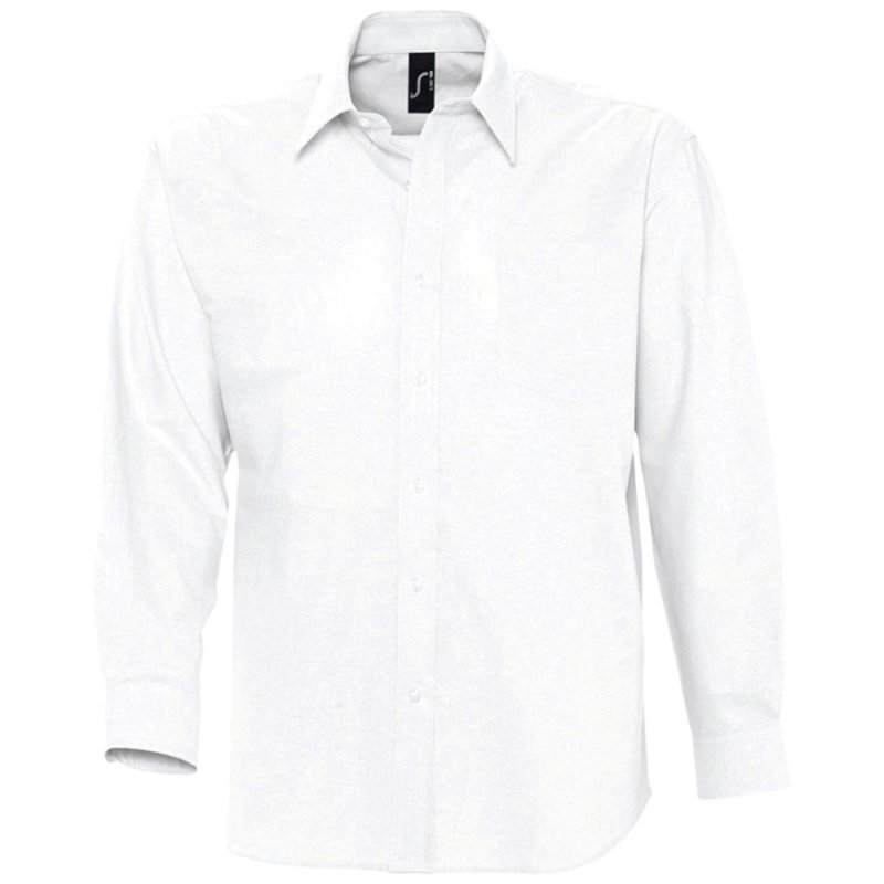 Рубашка из ткани «Оксфорд» с нагрудным карманом слева. На спинке две симметричные складки, воротник на двух пуговицах, регулируемые манжеты, планка с семью пуговицами в тон.