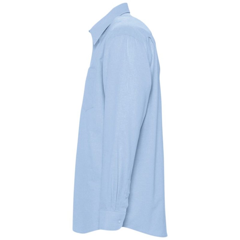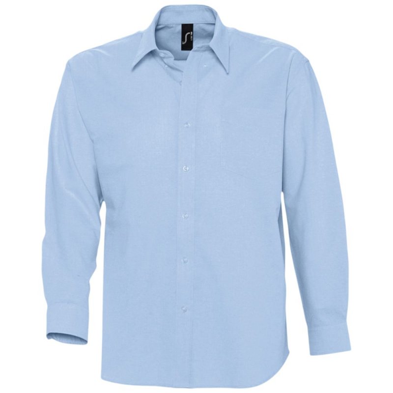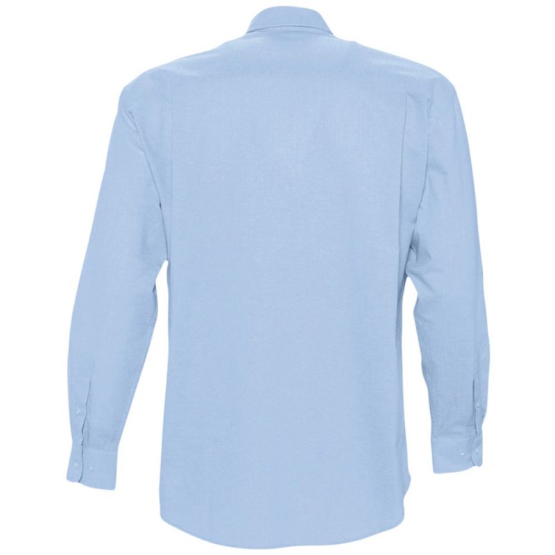 Рубашка из ткани «Оксфорд» с нагрудным карманом слева. На спинке две симметричные складки, воротник на двух пуговицах, регулируемые манжеты, планка с семью пуговицами в тон.