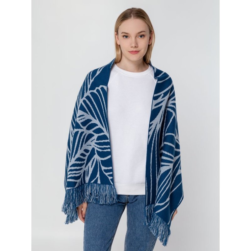 Палантин с пестрой бахромой с вывязанным логотипом и индивидуальным рисунком в фирменной цветовой гамме.