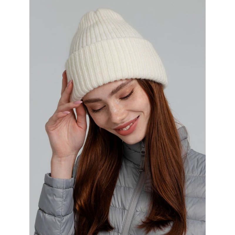Однослойная шапка фактурной вязки. Высота отворота регулируется самостоятельно.