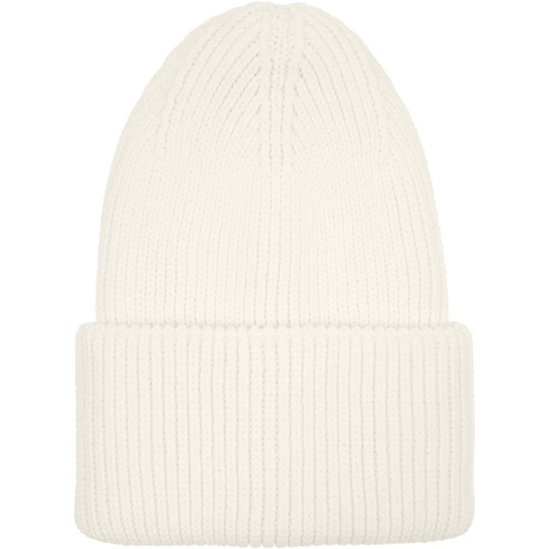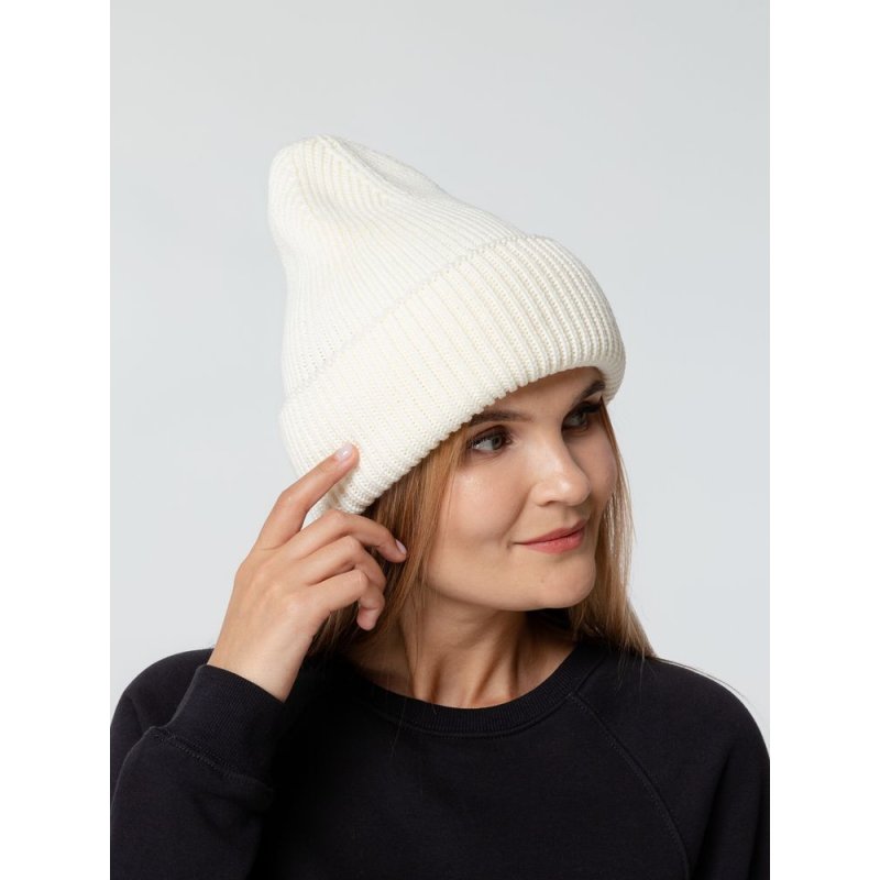 Удлиненная шапка объемной фактурной вязки с отворотом.