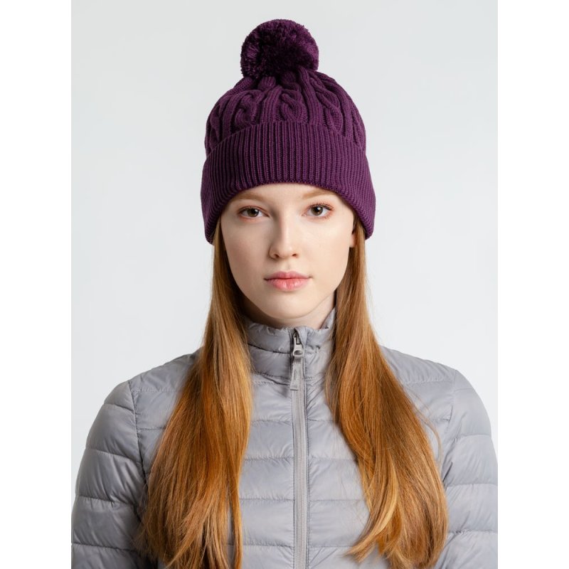 Однослойная шапка фактурной вязки с отворотом.