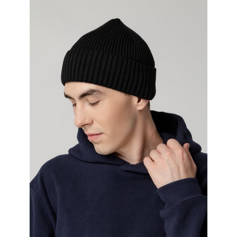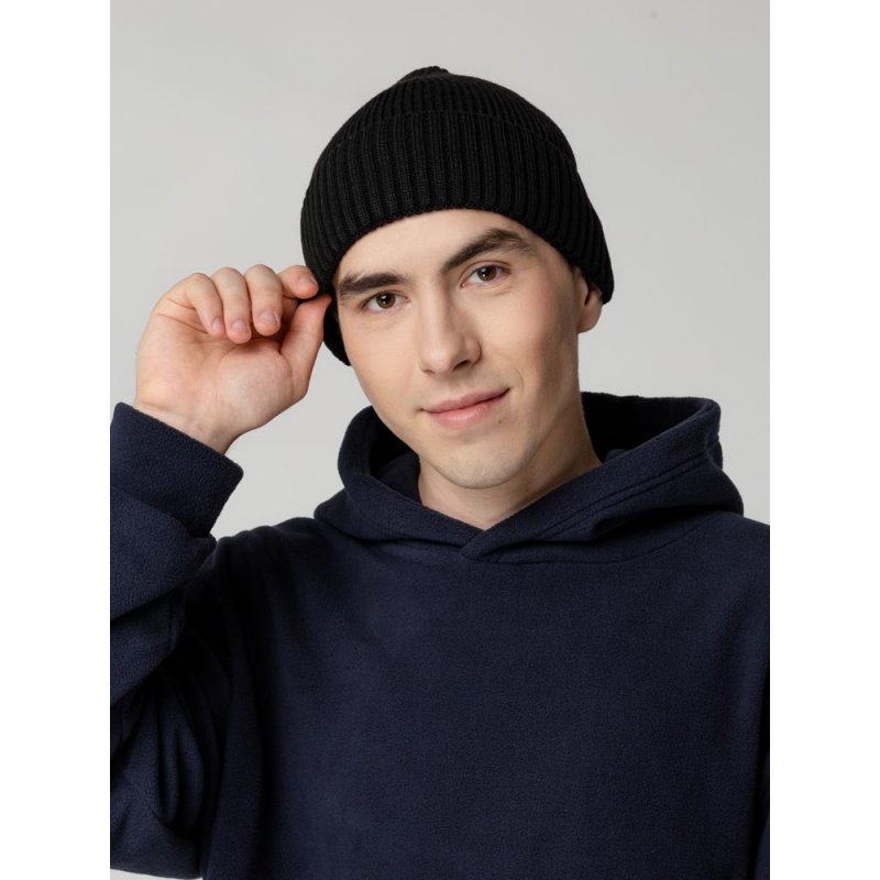 Основное полотно связано резинкой 1x1, отворот — резинкой 2x2.