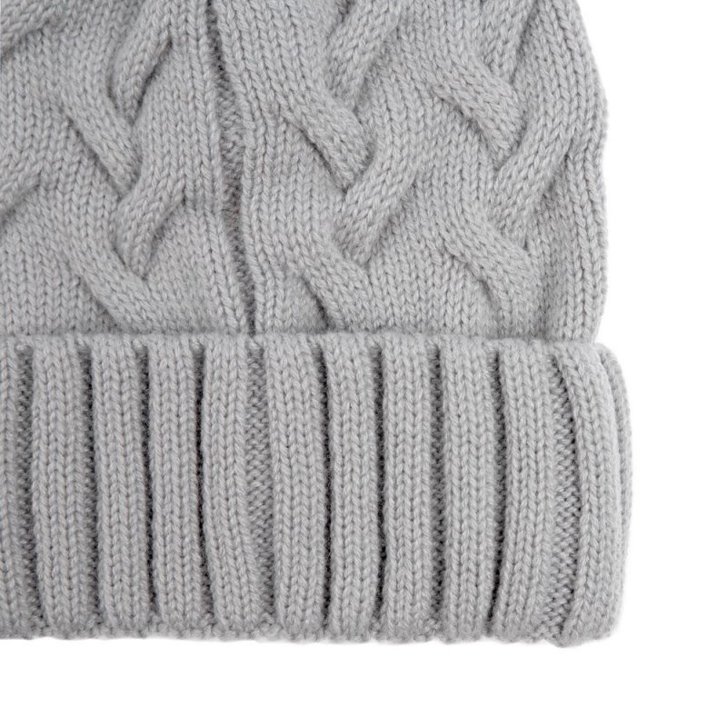 Однослойная шапка фактурной вязки с объемными косами и рельефным отворотом.