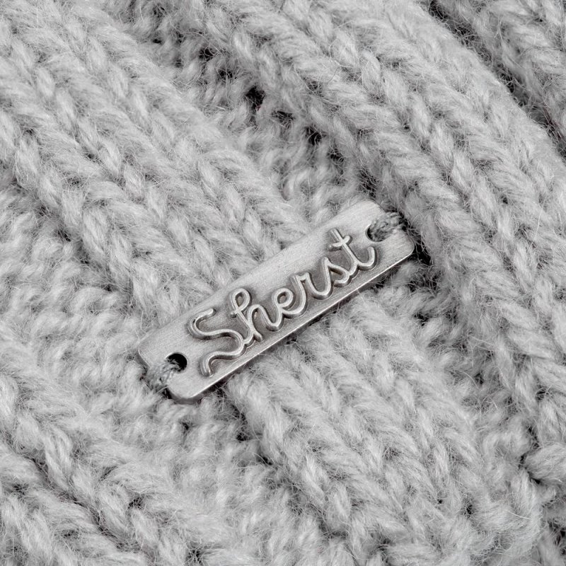 Металлический шильд с названием бренда расположен у заднего шва шапки. Это оставляет место спереди для пришива лейбла или шильдика с логотипом заказчика.
