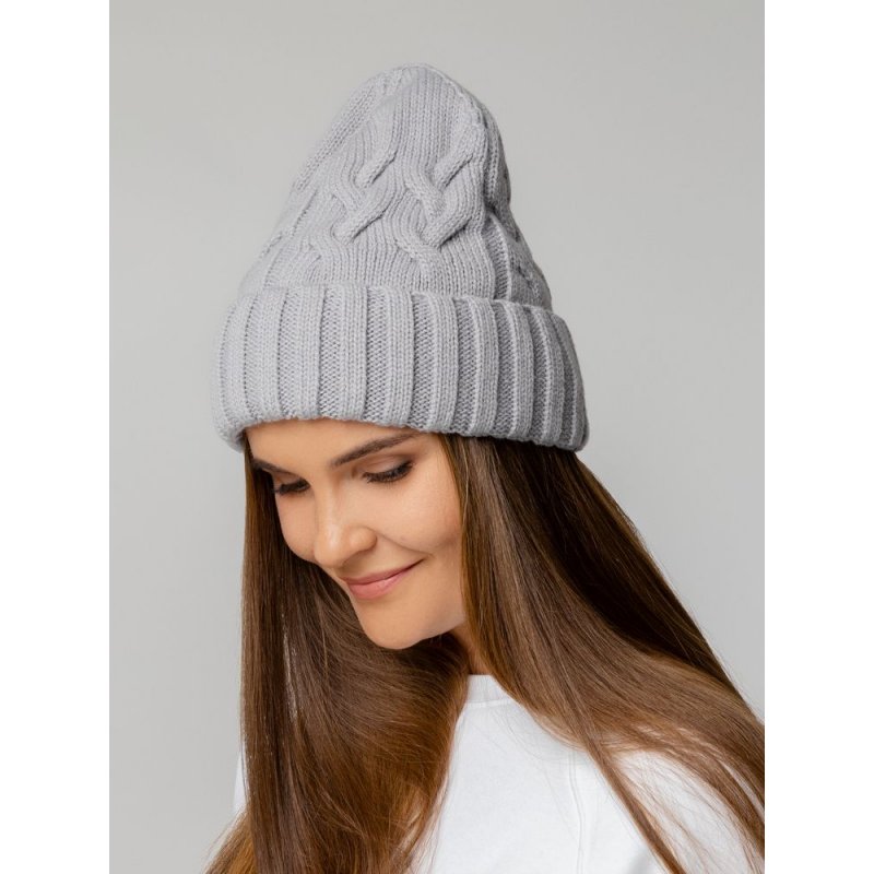 Мягкая удлиненная женская шапка объемной вязки Loren — уютный вариант для создания современного городского образа.