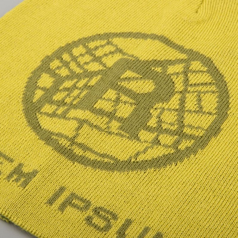 Шапка с вывязанным логотипом и индивидуальным рисунком в фирменной цветовой гамме.