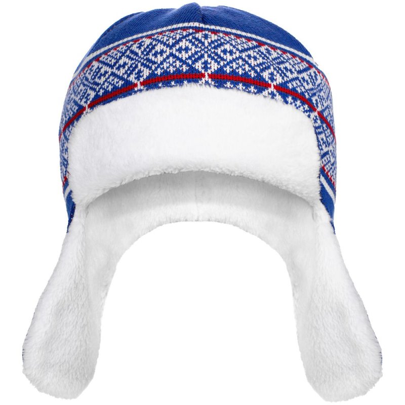 Шапка с вывязанным логотипом и индивидуальным рисунком в фирменной цветовой гамме.