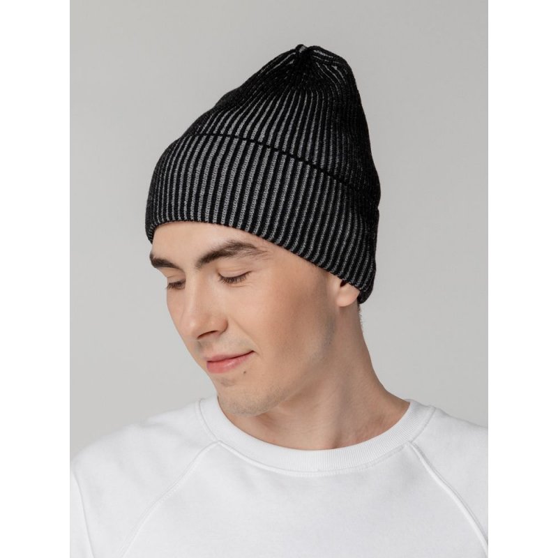 Удлиненная двухцветная шапка из полушерстяной пряжи идеально подходит для создания яркого и современного городского образа и будет удачно смотреться с верхней одеждой разных стилей.