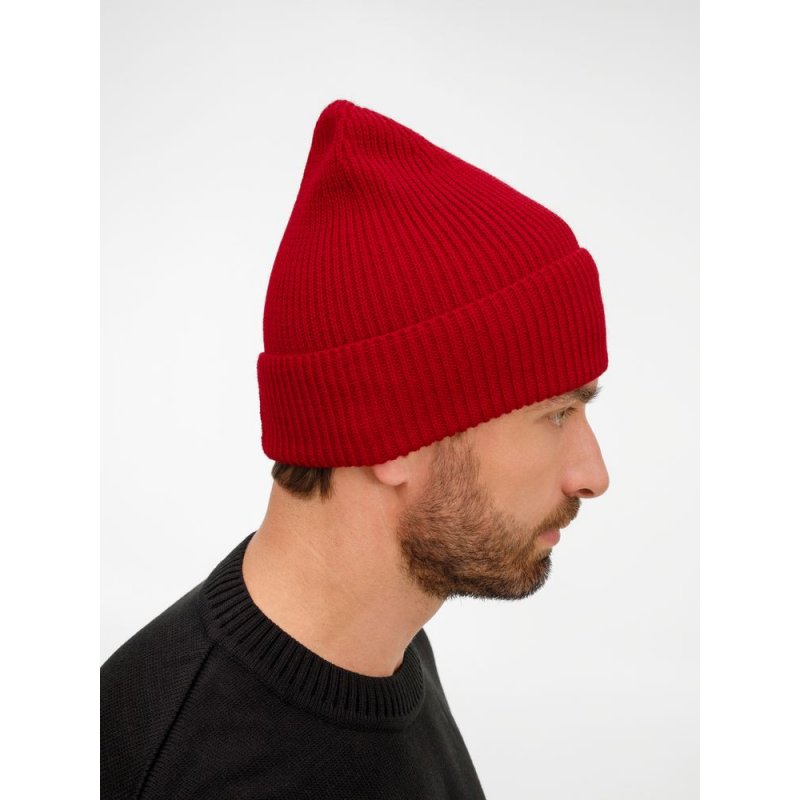 Удлиненный силуэт шапки Nobilis Mono из мягкой полушерстяной пряжи с широким отворотом создает стильный современный образ, а фактурная вязка добавляет объем и выразительность.