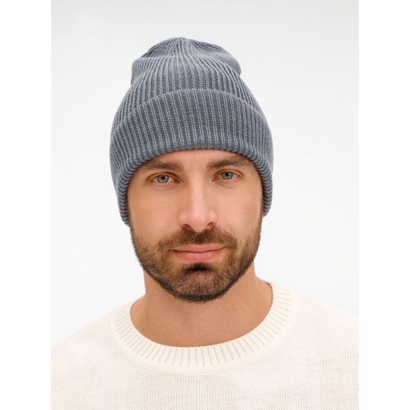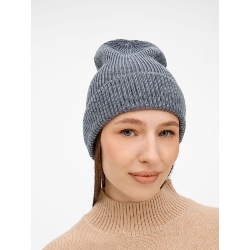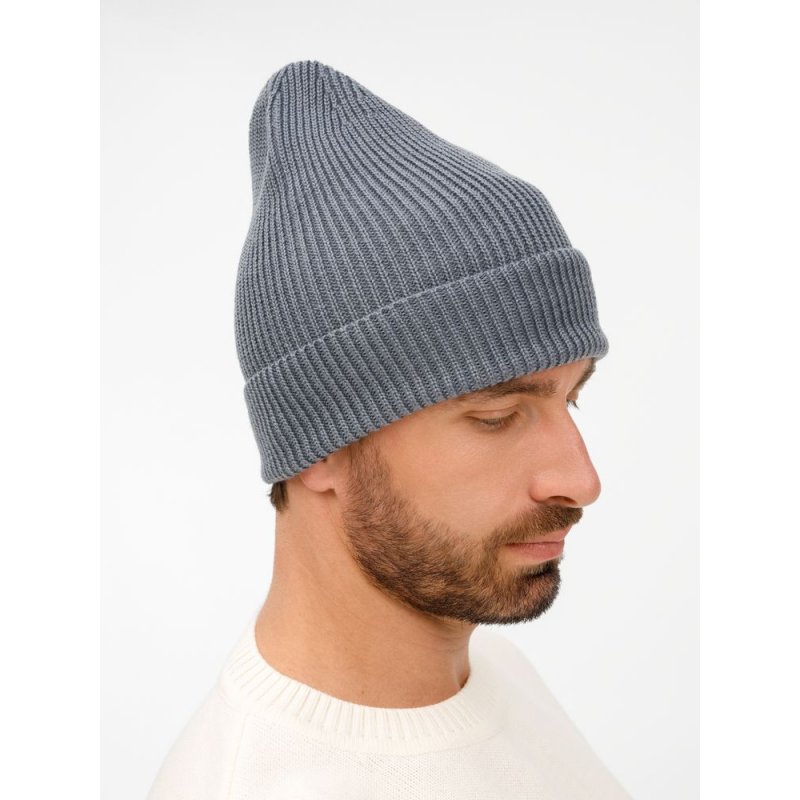 Удлиненный силуэт шапки Nobilis Mono из мягкой полушерстяной пряжи с широким отворотом создает стильный современный образ, а фактурная вязка добавляет объем и выразительность.