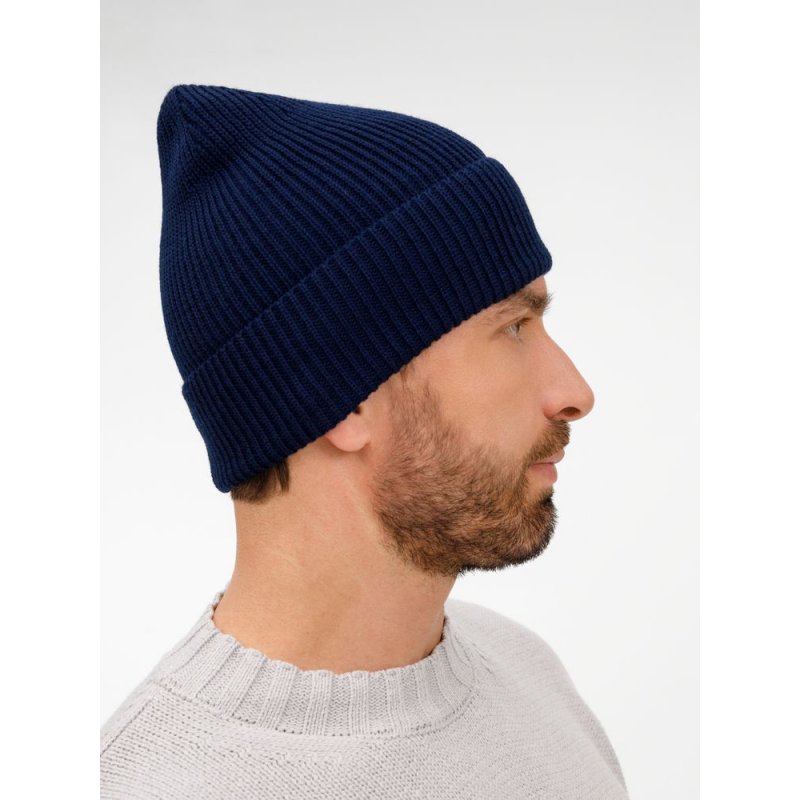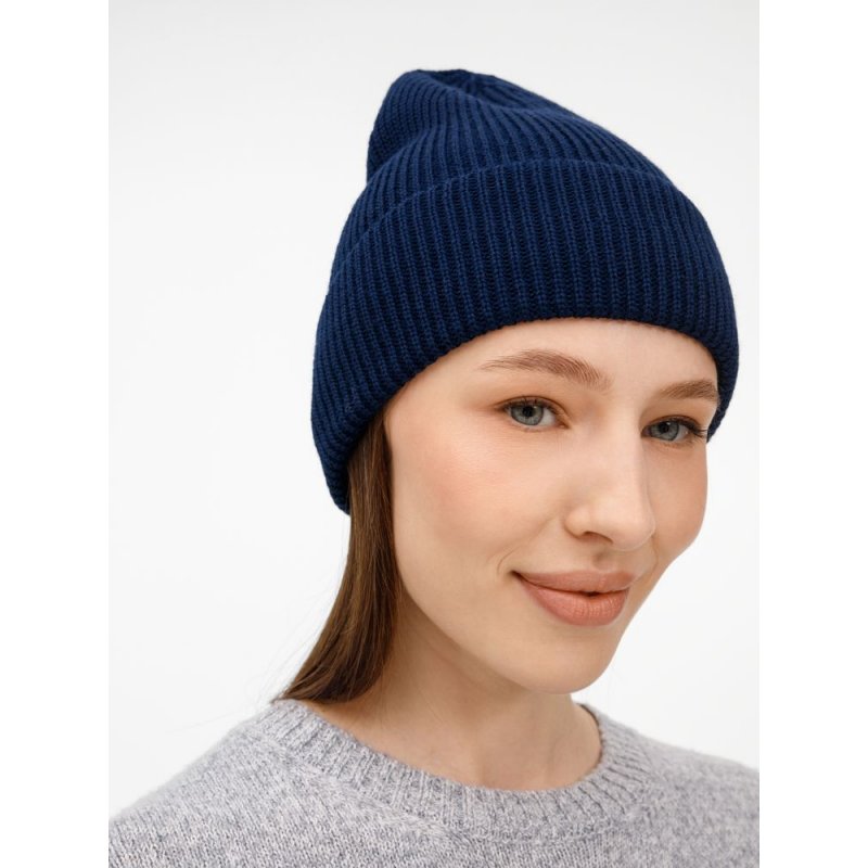 Удлиненный силуэт шапки Nobilis Mono из мягкой полушерстяной пряжи с широким отворотом создает стильный современный образ, а фактурная вязка добавляет объем и выразительность.