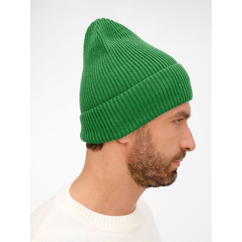 Удлиненный силуэт шапки Nobilis Mono из мягкой полушерстяной пряжи с широким отворотом создает стильный современный образ, а фактурная вязка добавляет объем и выразительность.