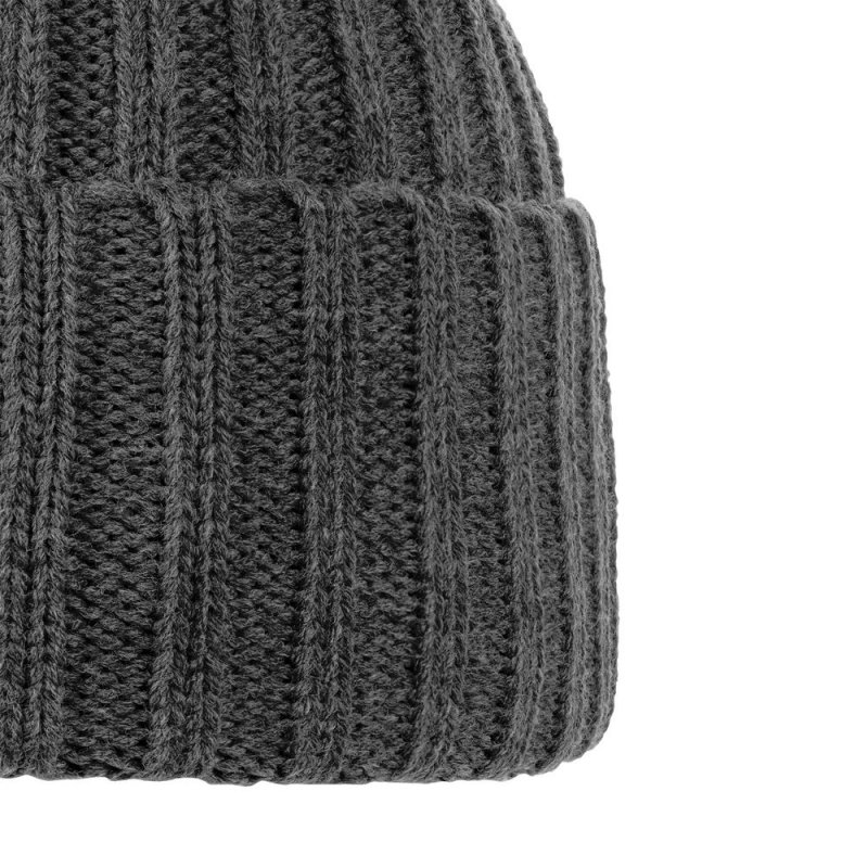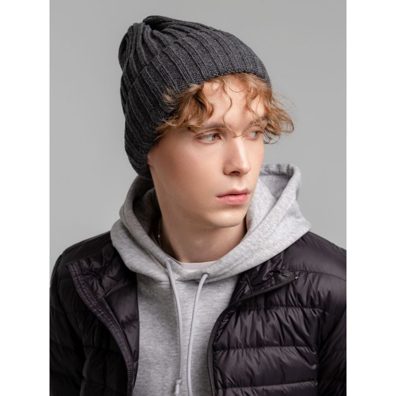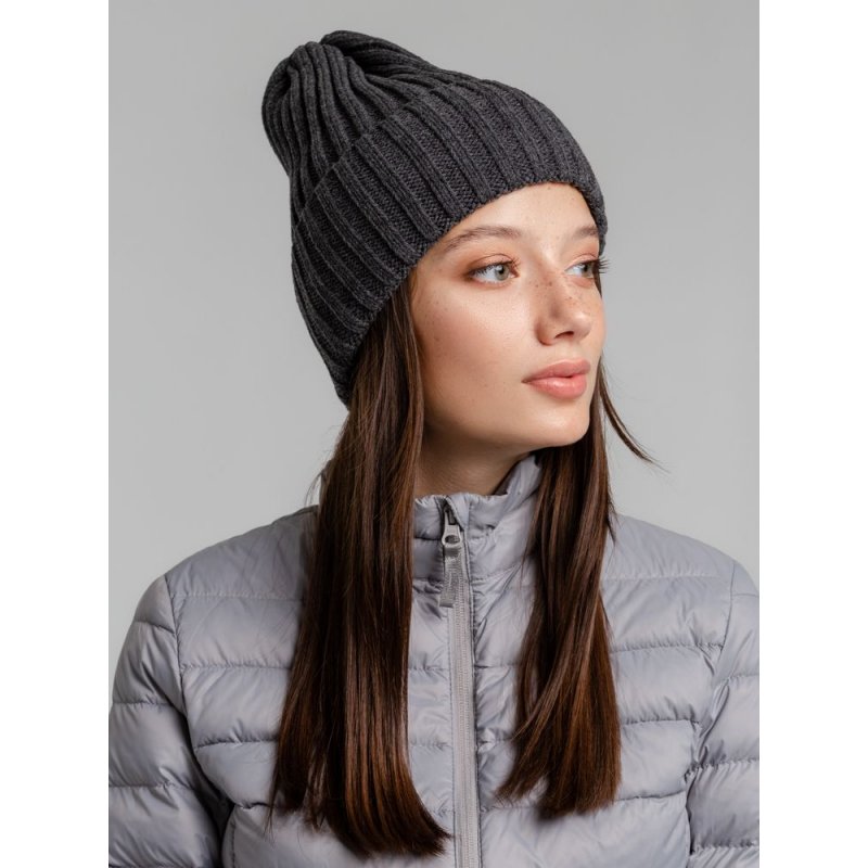 Однослойная шапка фактурной вязки с флисовой подкладкой.