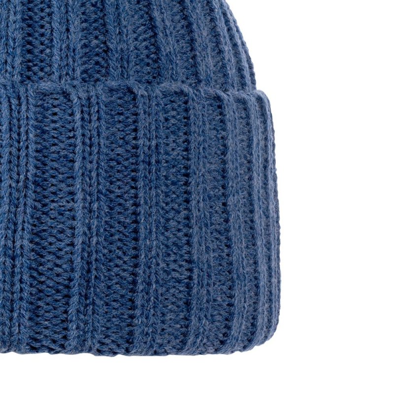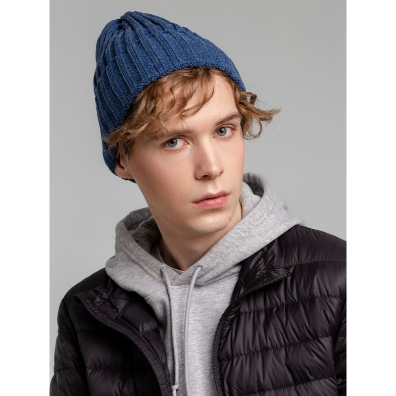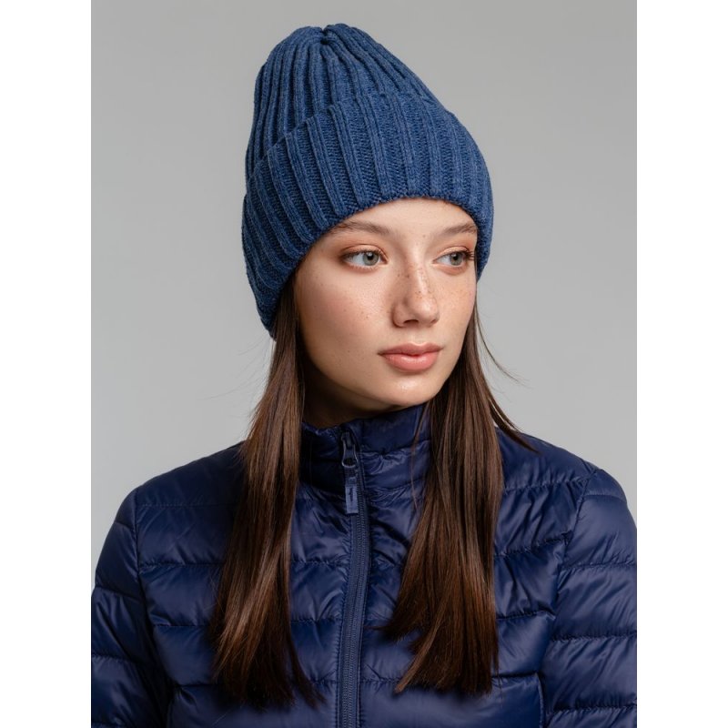 Однослойная шапка фактурной вязки с флисовой подкладкой.